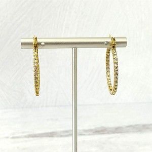 Inside Out CZ Hoop Earrings Gold over Sterling Silver 1.25" 2mm Light n Elegant