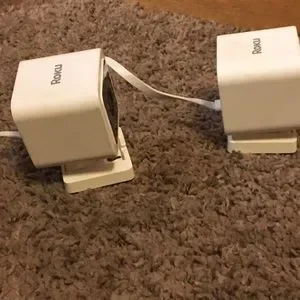 Two white roku cameras work perfectly cords and all