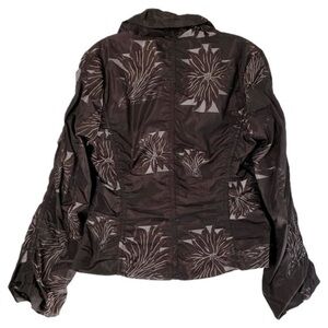 Insight Double Breasted Ruched Floral Print Jacket Sz 10 Brown Gray Lightweight