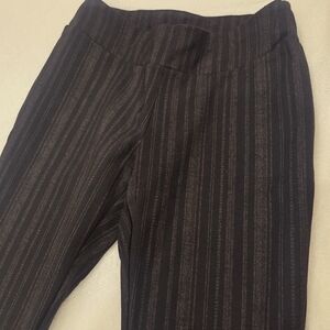 Pants by Insight ( Tag is missing but it is a 0 ) Last photo has another Size 0 laying over for comparison . Black Pants with light faded red/ golden / brown stripes. In good used condition without imperfections .