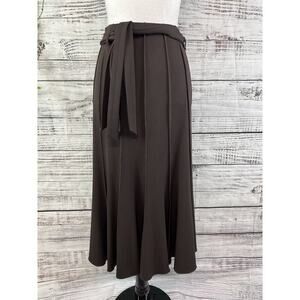 Insight Skirt size 2 Chocolate Brown Flared Midi Belt Stretch Modest Career Slim