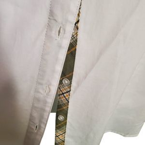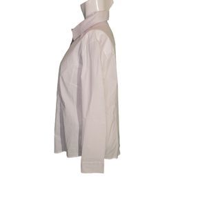 Insight Women's White Cotton Button Down Shirt Subtle Plaid Details Sz L NEW