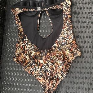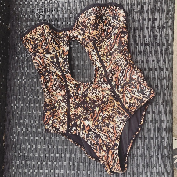 One piece, lightly used condition. Has spots for straps. Beautiful fit.
