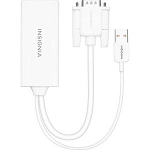 Condition : Like New Item in perfect working condition. Original protective wrapping may be missing, but the original packaging is intact and in good condition with minor damage possible. Instructions are included. Product Description: Whether you’re working, gaming or watching a movie, why settle for a small, single-monitor display? This Insignia NS-PCAVH VGA to HDMI Adapter can take your computer setup to a whole new level. Gift yourself a theatrical experience by mirroring the display from a VGA computer or laptop to any HDMI-enabled monitor. Or extend your existing display to a second monitor, making it easier to organize programs and windows for day-to-day use at work or while browsing. This adapter supports resolutions up to 1920 × 1080 at 60 Hz for high-quality video, and an attached USB cable lets you hook up your audio. Its hassle-free setup requires no additional software, letting you work hard and play harder. FEATURES   * VGA to HDMI Mirror or extend your computer’s display by connecting from your computer’s VGA port to an HDMI-enabled device. * System requirements HDMI connection works with TVs, projectors, display monitors and more. * Integrated audio Connect the attached USB cable to send audio from your computer to the display. * High-quality video Provides high-quality resolution up to 1920 × 1080 at 60 Hz. * No-hassle setup Plug-and-play design requires no additional software.