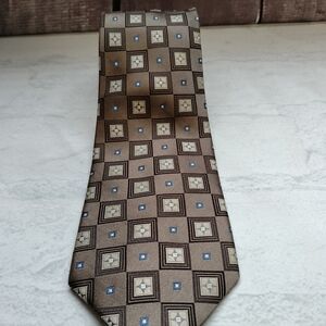 Insignia by Martin Wong Gold Bronze Silk Handmade Geometric Blue Accents Tie
