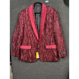 Insomnia Blazer Jacket Mens Medium Wine Red Sequin Shawl Collar Party Prom M205