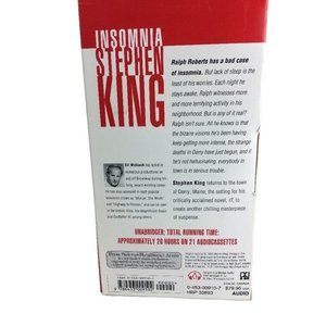 Experience the chilling tale of "Insomnia" by Stephen King. This unabridged 1994 audiobook novel comes in cassette format, adding an eerie touch to your listening experience.