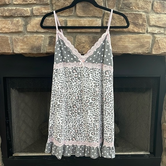 Insomniac pink, gray and white leopard pattern nightgown Size Medium