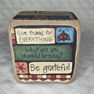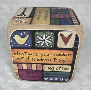 Decorative block with inspirational messages. Features vibrant colors and designs.
