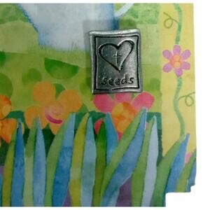 Pewter-tone pinbacks on pastel card with floral art and Isaiah 61:11b. Each approx. Β½". A sweet spiritual gift for gardeners, friends or teachers.