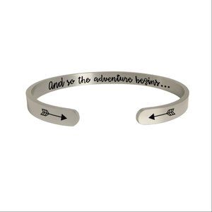 Inspirational Mantra Bracelets - And So The Adventure Begins Quote Engraved Bracelet Mantra Cuff Bangle