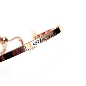 Inspirational Mantra Cuff Bangle Bracelet Rose Gold Adjustable "Blessed"