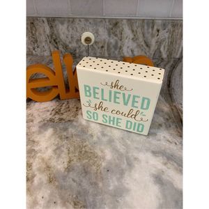Three Items - wooden saying Believe with wire flower, plus motivational Saying on cream and white box dotted with gold and My Life Nook which is a personal diary