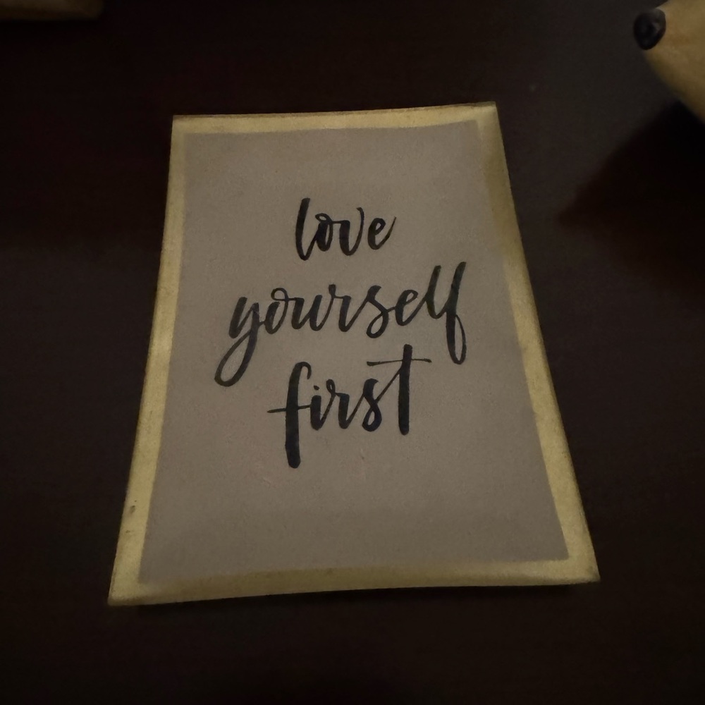 Decorative plate art featuring 'Love Yourself First' with a gold border. Perfect for adding a motivational touch to any space.