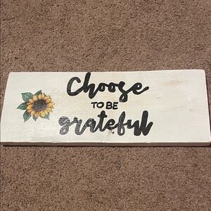 Brighten your space with this white wall sign featuring a sunflower and the uplifting message 'Choose to Be Grateful.' A perfect addition to any room for a touch of positivity.