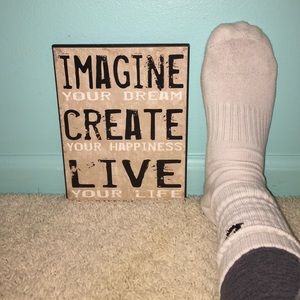 "Imagine your dream, create your happiness, live your life" hangs on wall, or can put wherever you want! I included that picture with my foot so you can tell how big it is, hopefully it helps😂 cheaper on Ⓜ️ercari!!