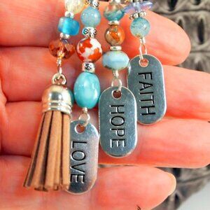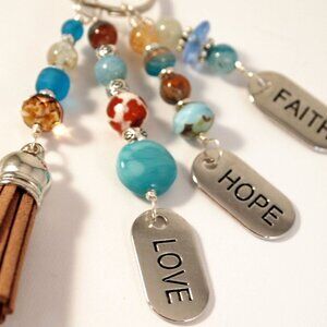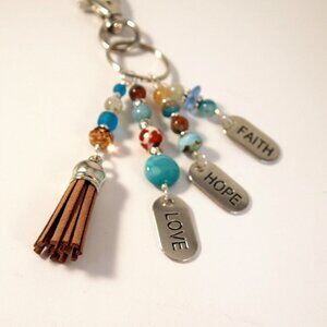 Inspirationally Beaded Tassel Purse Charm Bohemian Key-chain Hope Love Faith Key Fob Hipster Key-chain Gift for Her Handmade Key-chain.