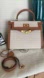 Inspired Designer " H Kelly" Top Handle Crossbody Handbag Brown Leather Trim, Cream Canvas, Leather Interior