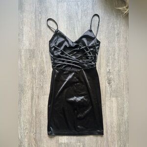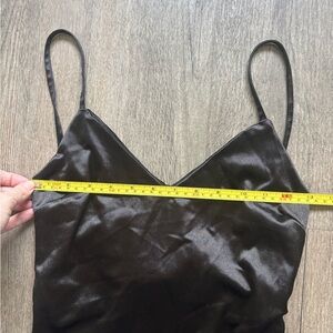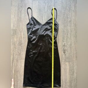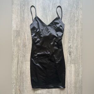 Chic black satin dress with delicate straps. Ideal for special occasions.