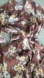 Chic brown blouse with floral pattern. Features a classic collar and button-up front.