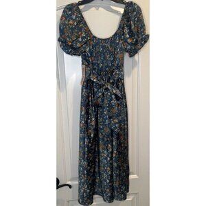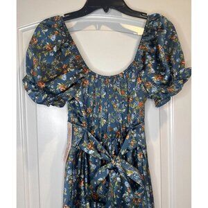 Inspired Hearts Colorful Floral Satin Milk Maid Peasant Midi Dress Sz S NEW