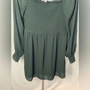 Inspired Hearts Dark Green Smocked Long Sleeve Dress Size XL