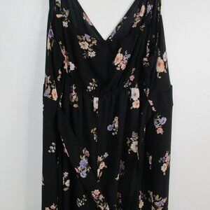Inspired Hearts Dress Women's Size 3X Black Floral Adjustable Strap Wrap V Neck.
