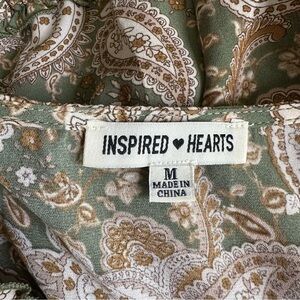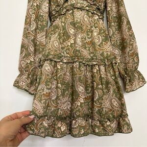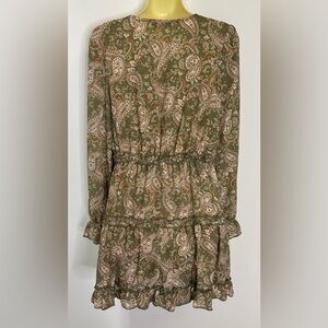 Inspired Hearts Green and Brown Paisley Bohemian Long Sleeve Dress size M
