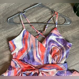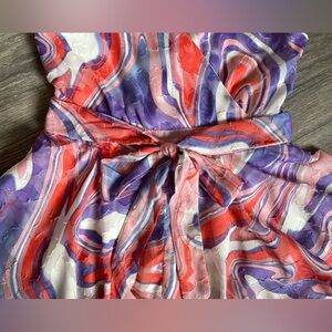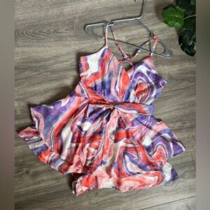 Inspired Hearts Jacquard Tie Dye Tiered Flowy Belted Sleeveless Romper. Size L