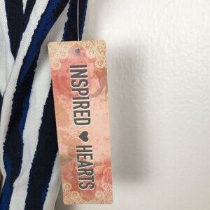 Inspired Hearts Women Large Blue Vertical Stripe Nautical Belted Dress Shorts