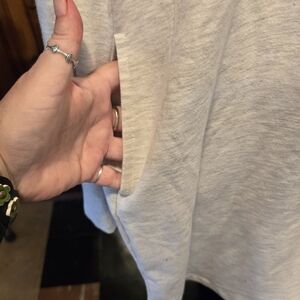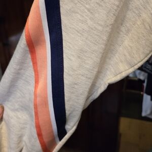 Nice cream colored sweatshirt dress by Inspired Hearts in a misses size XL. it is cream with blue white and peach striping on arms and upper back. It is new without tags