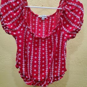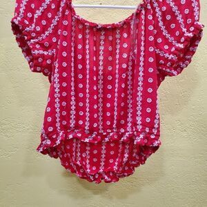 Inspired heart crop top size large length is 11in armpit to armpit is 15in from shoulder to end of sleeve is 5in measurements are not doubled and are measured with the item laying flat and on back measurements are approximate not exact binU