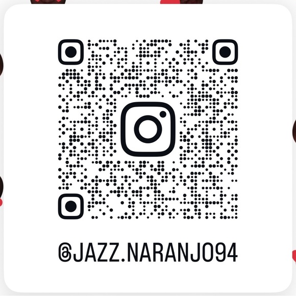 Square Instagram QR code sticker. Black QR dots and logo on white background. Includes username @JAZZ.NARANJO94 printed below.