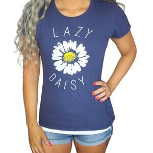 Instant Message Shirt Womens Medium Navy Blue Daisy Floral Graphic Comfy Floral