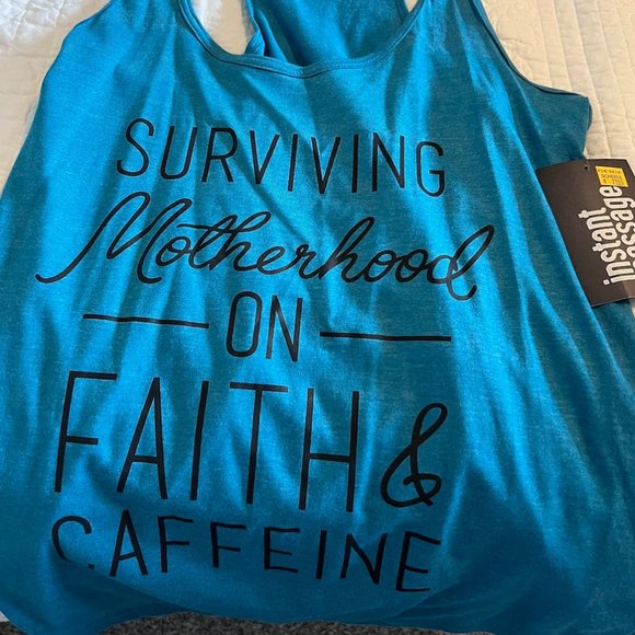 "Surviving Motherhood on Faith & Caffeine". NWT from Scheels. Originally priced at $21.95. Racer back.