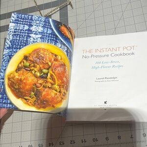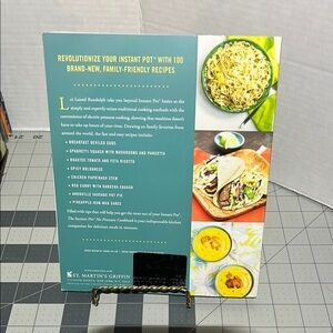 Instant Pot cookbook with 100 low-stress recipes. Features a colorful cover with a food image.