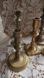 Set of 5 different vintage brass candlesticks ranging from 3" to 9 1/8"