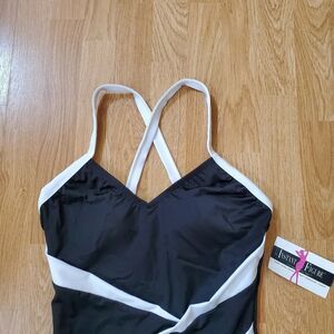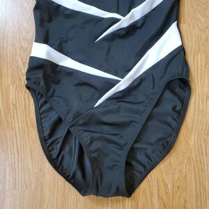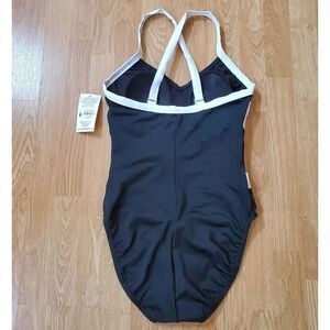 InstantFigure compression two-tone one-piece swimsuit.