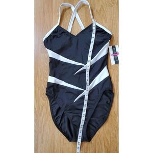InstantFigure compression two-tone one-piece swimsuit with super slimming all-over body control.