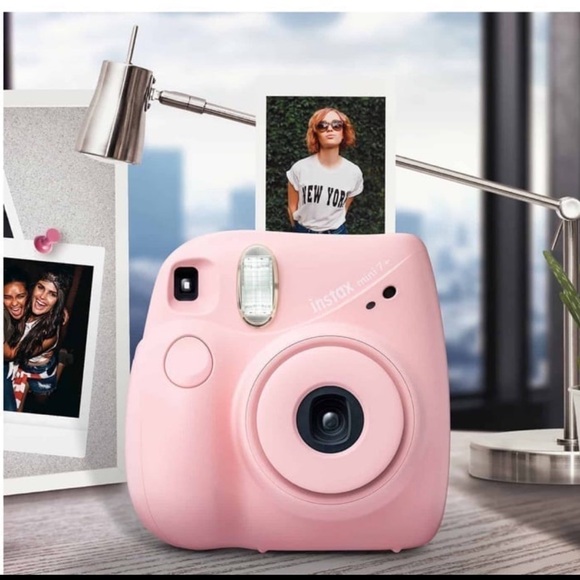 Fujifilm Instax Mini 7+ camera in light pink. “Cool, colorful and compact, the instax mini™ 7+ is as fun as it is easy to use. Frame up your shot and snap away in any lighting with brightness control.” Case included. Both in great shape!