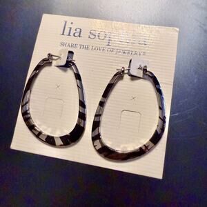 This is a pair of vintage, retired Lia Sophia black & silver tone animal print hoop earrings. They are in excellent preloved condition and measure about 2".
