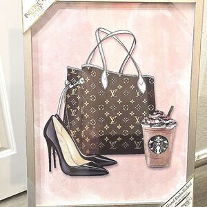 Instinct Style Louis Vuitton, Heels, & Starbucks Framed Wall Decor