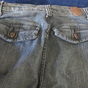 Faded, wide leg jeans. Bottom of pants (seams) were altered. (See images) good condition. Clean. Washed.