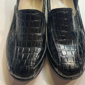 Instreet women’s black leather alligator pattern slip on shoes. Excellent used condition. No major imperfections. And sanitized. Smoke-free home. 24 hour shipping. Open to reasonable offers.