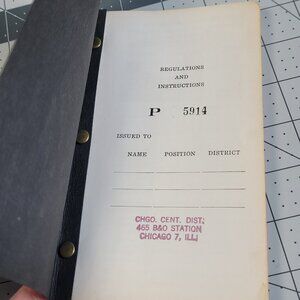 Excellent condition. It doesn't appear to be used. The covers are stiff so I didn't open it all the way for photos. The first page is stamped P 5914 in black and has a space to add names the book was issued to. There are no names written in. Under that is a red stamp that reads CHGO. CENT. DIST. 465 B&O STATION CHICAGO 7, ILL. The book measures 6 3/4" x 4". Please email with any questions!