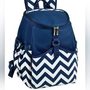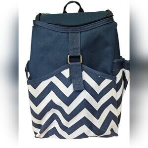 Insulated Backpack Cooler Picnic at Ascot Original Blue and White Chevro…