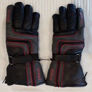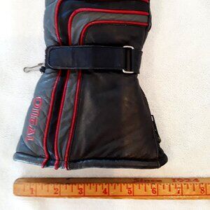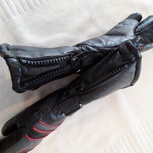 Insulated Leather Zip Gauntlet Black/Gray Motorcycle Riding Gloves w/red trim