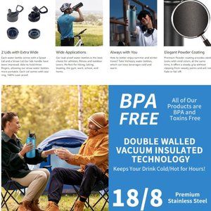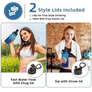 Insulated Stainless Steel Sports Water Bottle - Leak Proof w/ 2 Lids