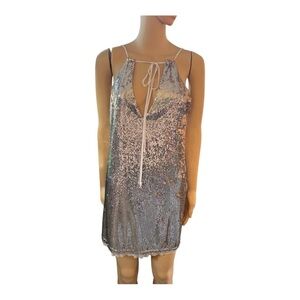 IntFree People Double Take Sequin Mini Dress Women Silver V Neck Silver Dress