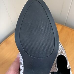 Minimal signs of wear. Slip on/pull on style. Faux snake skin. Soles and footbed are clean and show very little wear. Heel